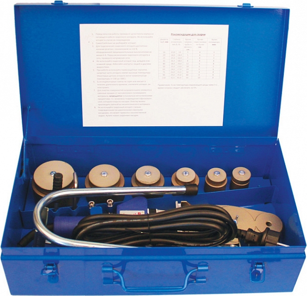 - Сварочные насадки Ø 20, 25, 32, 40, 50, 63 мм (Ø 16 мм при необходимости приобретается отдельно!)