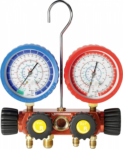 Четырехпозиционный аналоговый манометрический коллектор для хладагентов R22, R134A, R407C, R404A Rothenberger 1/4 SAE (Ротенбергер 1/4 САЕ) – долговечный высокоточный инструмент для профессионалов, работающих с системами охлаждения, для монтажа и обслуживания холодильной техники.