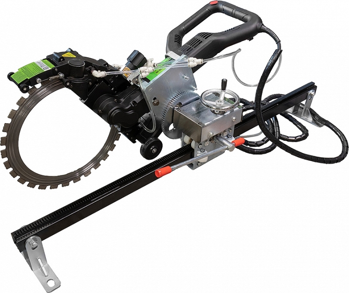 Электрический кольцерез по бетону Diamaster Titan-400 (Диамастер Титан-400) – профессиональный ручной электрический бесщеточный алмазный кольцевой резчик (ручная электрическая бесщеточная алмазная кольцерезная пила / стенорезная машина) для резки твердых материалов, таких, как: бетон, железобетон, кирпич, другие каменные и композитные материалы. Подходит для профессионального использования в строительстве, ремонте и демонтаже, обеспечивая высокую производительность и точность реза.