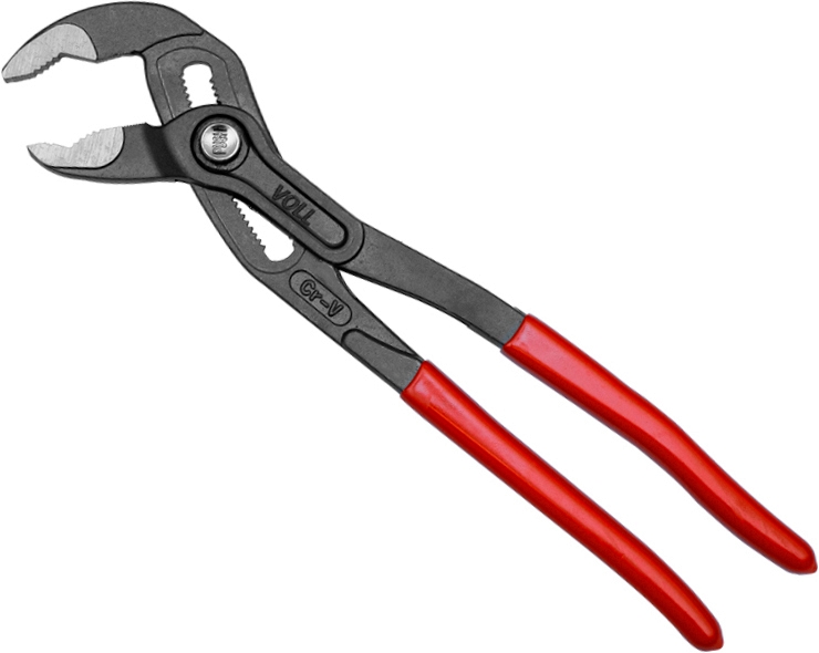 Клещи переставные с механизмом быстрой фиксации Voll Cobra 10 (250 мм), CrV (Волл Кобра 10 (250 мм), ЦрВ) предназначены для ремонта и монтажа трубопровода и сантехники, а также в других строительных работах, где необходимо зажимать предметы разного диаметра до 52 мм.