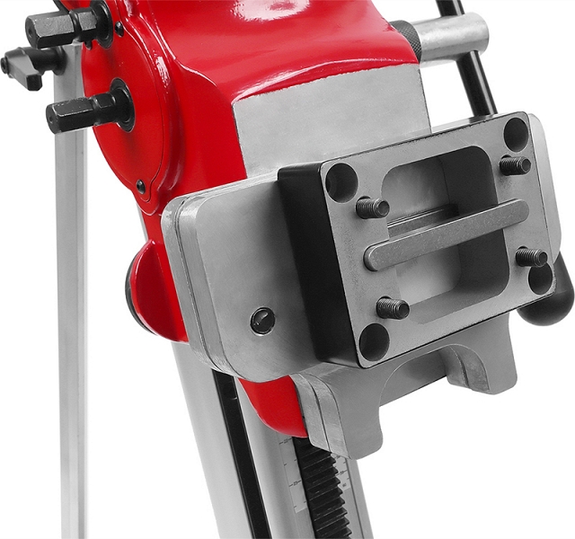 - Двухскоростной редуктор каретки: каретка имеет двухскоростной редуктор подачи алмазной коронки, что позволяет производить бурение разных материалов