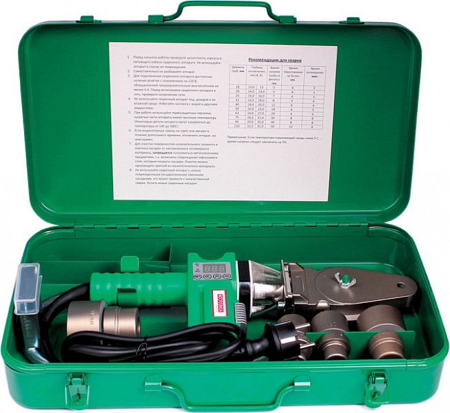 - Сварочные насадки Ø 20, 25, 32, 40 мм (Ø 16 мм при необходимости приобретается отдельно!)