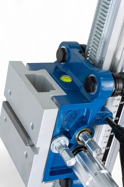 Сверлильный штатив Keos KS-250J (Кеос КС-250Джей) предназначен для фиксации сверлильных моторов мощностью до 3 кВт для бурения отверстий Ø до 250 мм под углом до 45°.